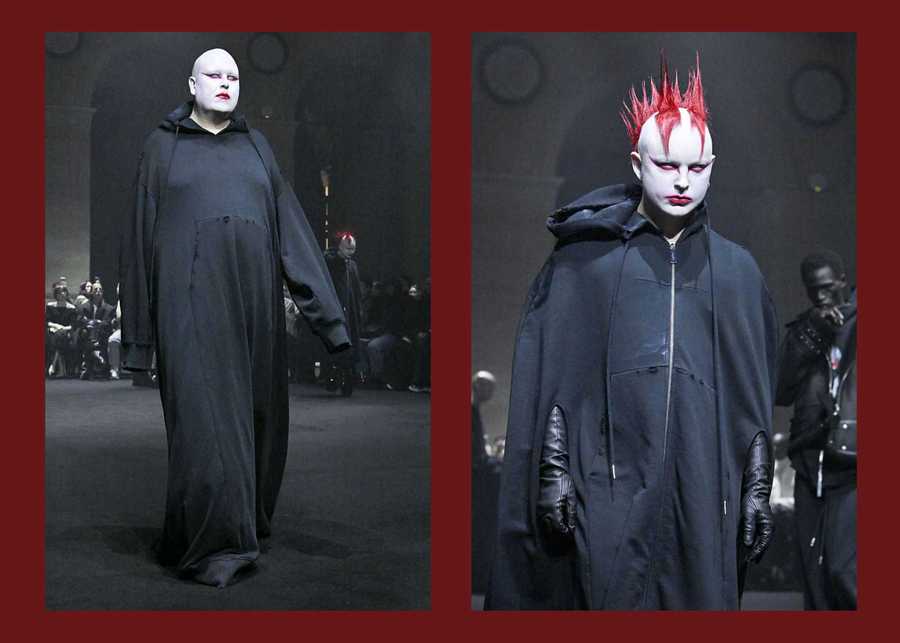 The show itself featured a ritualistic procession of distorted elite caricatures and models in black, hooded robes in a cult-like circular formation. That is hardly the work of detached satire.