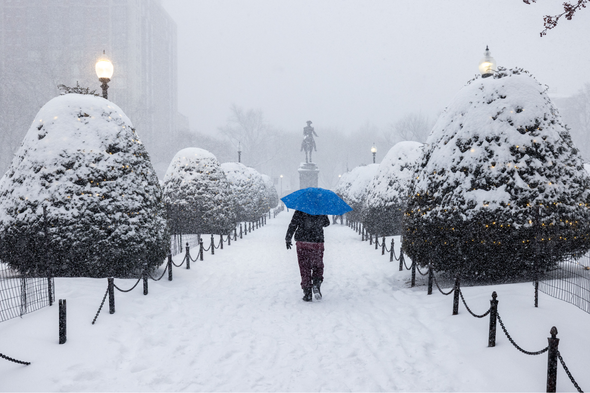 A person walks through Boston Public Garden during heavy snow in Boston, Mass., on Jan. 25, 2026. (Scott Eisen/Getty Images)